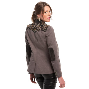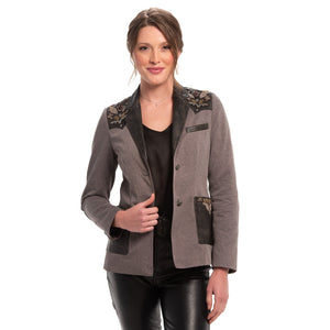 Jane Beaded Denim & Leather Blazer - Charcoal Denim