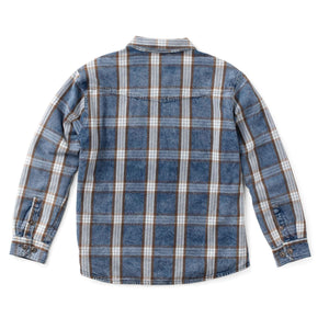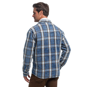 Crafted in a bold indigo plaid and enzyme washed, it delivers a comfortable, broken-in feel with a vintage look inside and out. Two button-flap chest pockets provide secure storage, while lower side-entry pockets keep your hands warm and essentials close. Finished with adjustable cuffs and a straight hem, this versatile shirt jacket is built for everyday wear through the cooler seasons.