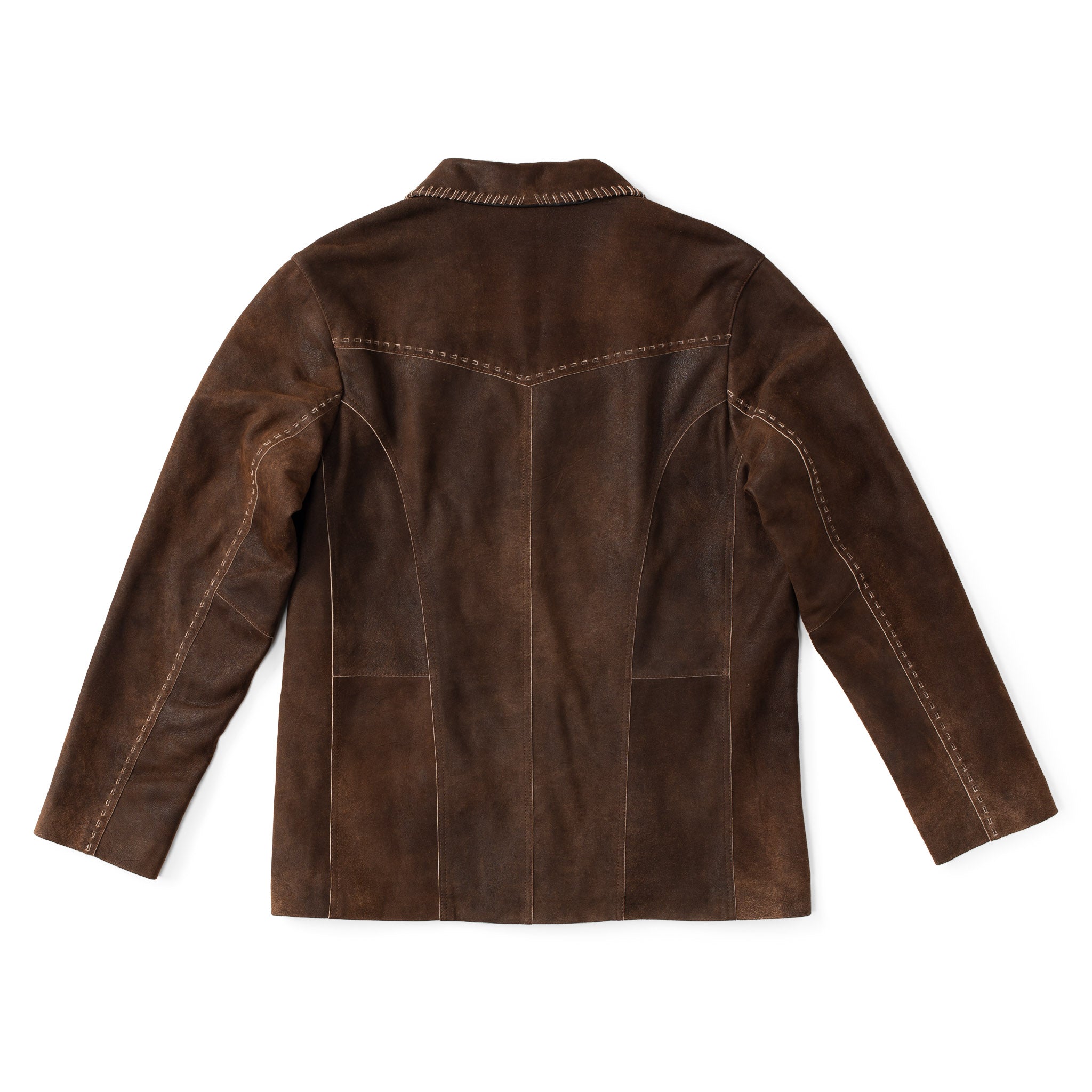 The Gallatin Whipstitch Blazer is crafted from supple goat suede with hand-applied whipstitch detailing and a clean, tailored cut. Designed to bridge the gap between jacket and blazer, Western-inspired stitching and paneling add structure and character, making it an easy layer with denim or chinos.
