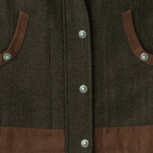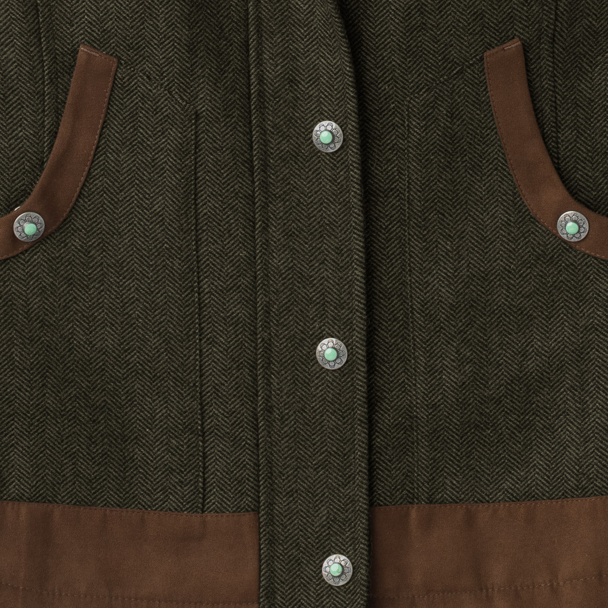 The Channel Wool Vest is a perfect blend of timeless style and contemporary comfort. Crafted from classic wool blend herringbone fabric with microsuede accents, this vest offers a fresh perspective on outdoor style. Our distinctive pewter and turquoise buttons add a pop of color and personality to your attire. Pair with the Claire Shirt to complete the look.